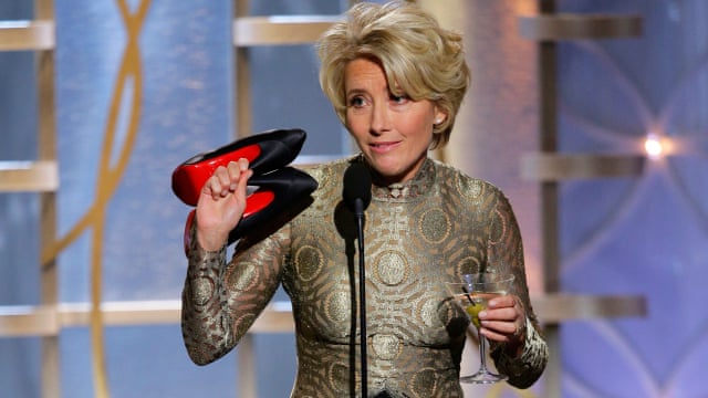 Golden Globes 2014 Emma Thompson Takes To The Stage Barefoot And Drinking Video Film The Guardian
